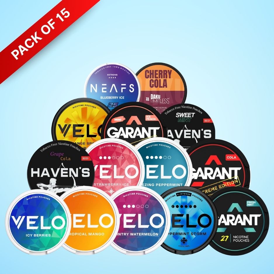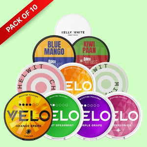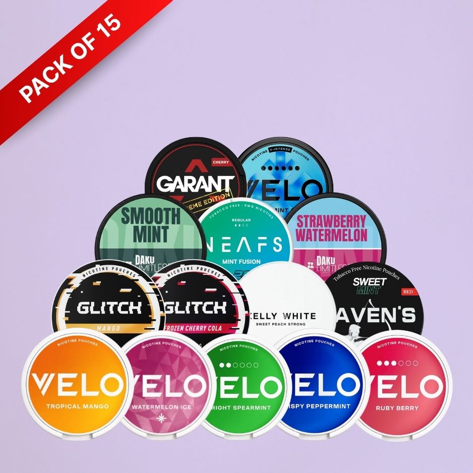 The Cool Crush Edition Pack of 20 blends juicy fruits and refreshing mint to create a smooth yet bold flavor experience. With iconic picks from VELO, Helwit, Daku Limitless, Kelly White, and more, this collection is crafted for those who crave a perfect balance of sweetness and cool intensity.