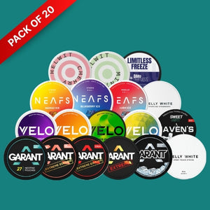 The Smooth Fruity Chill Pack of 20 is crafted for those who love a harmonious blend of sweet, minty, and fruity notes. Featuring top picks from VELO, Daku Limitless, Garant, Kelly White, NEAFS, and Helwit, this collection delivers an ultra-refreshing and smooth nicotine pouch experience.